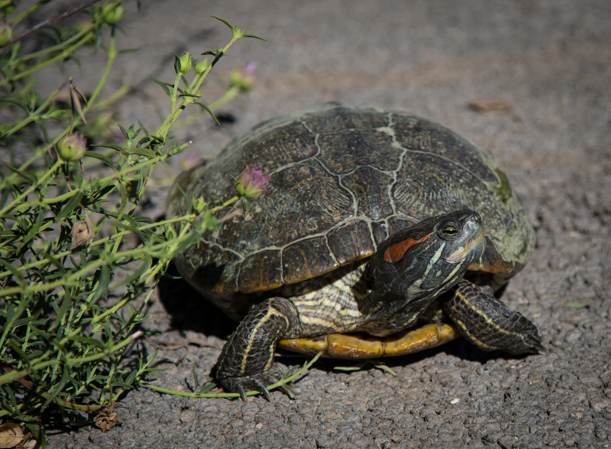 This weekend I visited the Los Angeles County Arboretum and Botanic Garden. My favorite part is their abundant herb garden which also serves as a pollinator habitat. Each time I visit I'm in awe of all the hummingbirds, bees and butterflies I see. It also hosts an impressive display of scented pelargoniums. You can imagine the wonderful fragrance walking through. On my walk today I came upon a turtle warming himself in the morning sun. It's not often I come upon a turtle and lucky for me, he was content to continue enjoying the sunshine while I snapped a few photos.